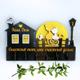 Дизайнерская настенная ключница с 6-ю крючками, сделанная в виде милого домика и сада с семьей кошечек, смотрящих на восход солнца.